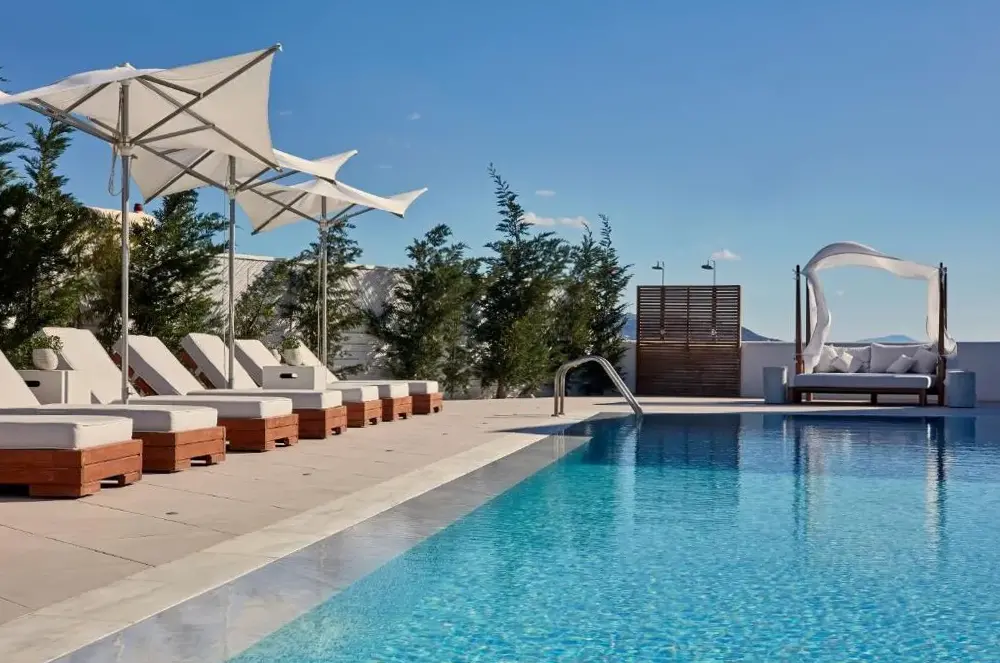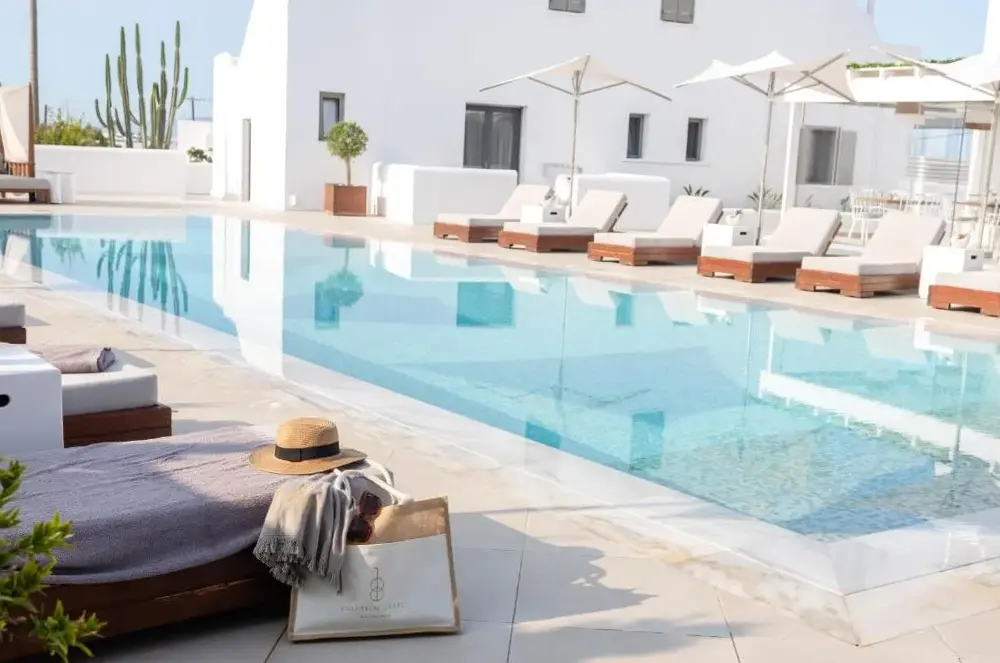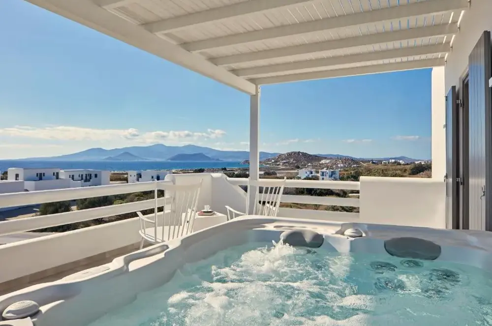 Amazing hotel in a great location, super friendly staff that made our stay as comfortable as possible, spacious rooms even with the baby cot, large and comfortable beds and a good sized private heated pool. Towels for both the pool and the beach were provided and free coffee capsules and tea bags in the room as well as water. Breakfast had a variety of tasty dishes to choose from. A bottle of wine with a cheese platter compliments of the hotel on arrival and a bottle when checking out were really appreciated! Room service was top and the Tanines restaurant worth a visit at sunset.